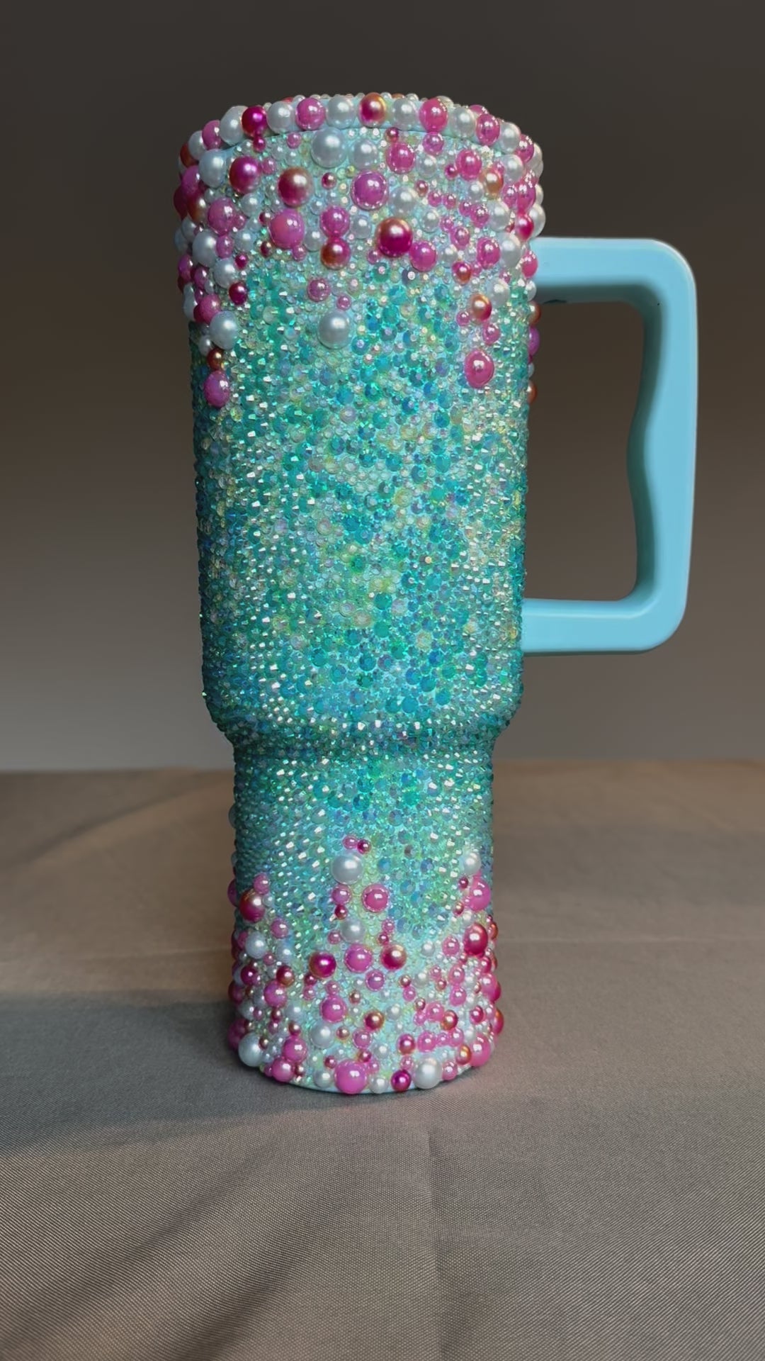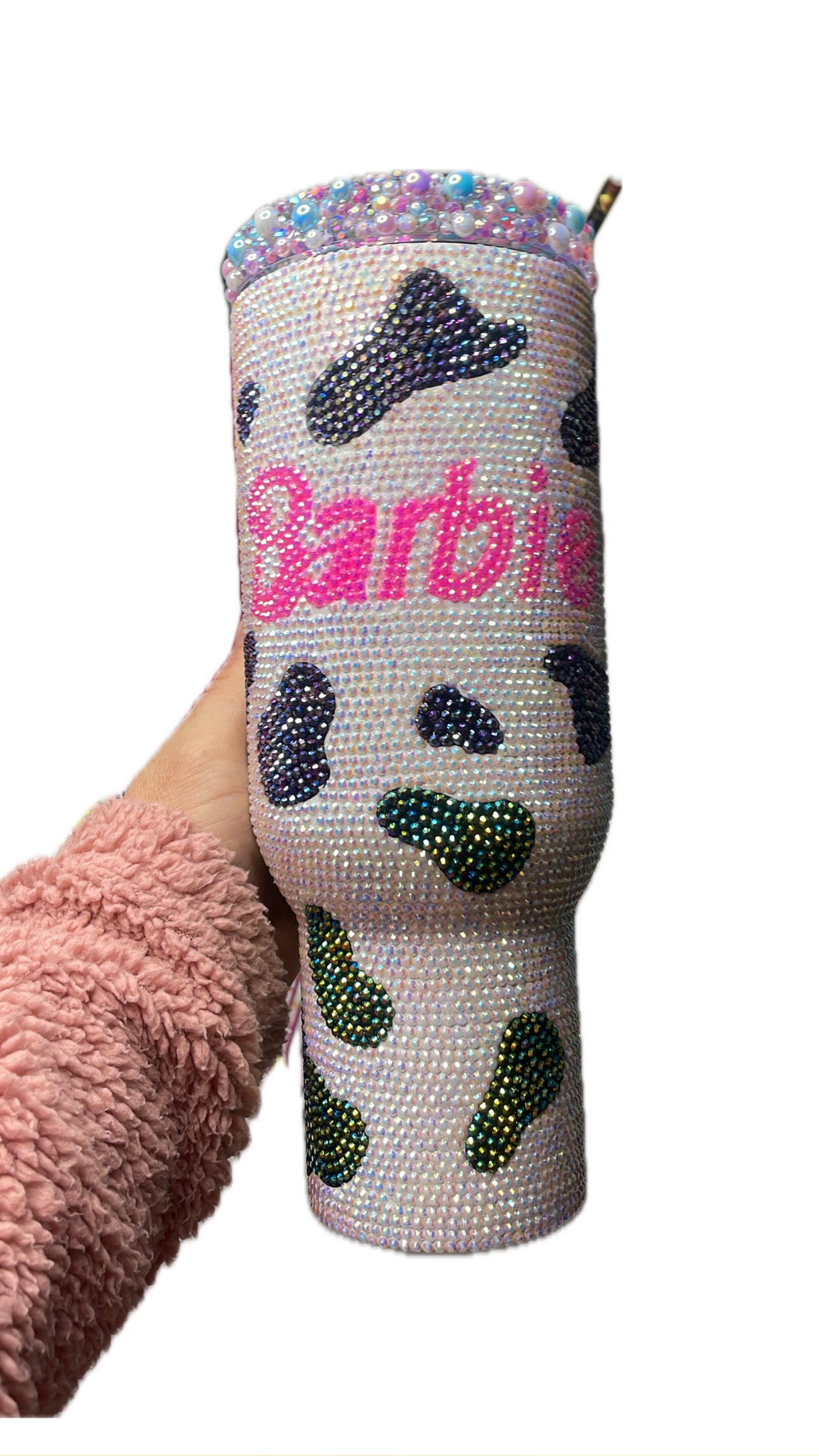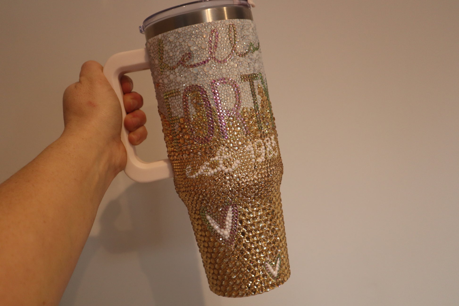 Custom Travel Mug, keeps drinks cold for 8-12hours. Comes with plastic straw and straw cleaner.