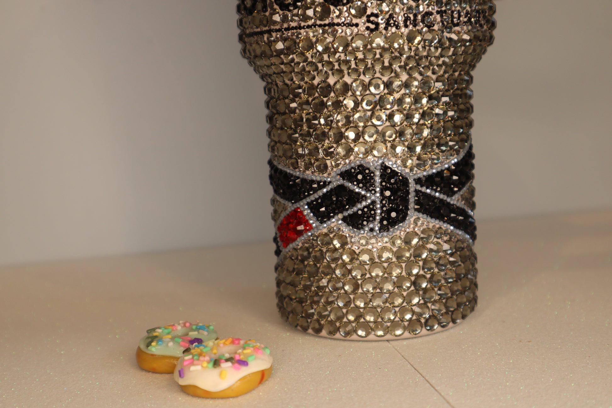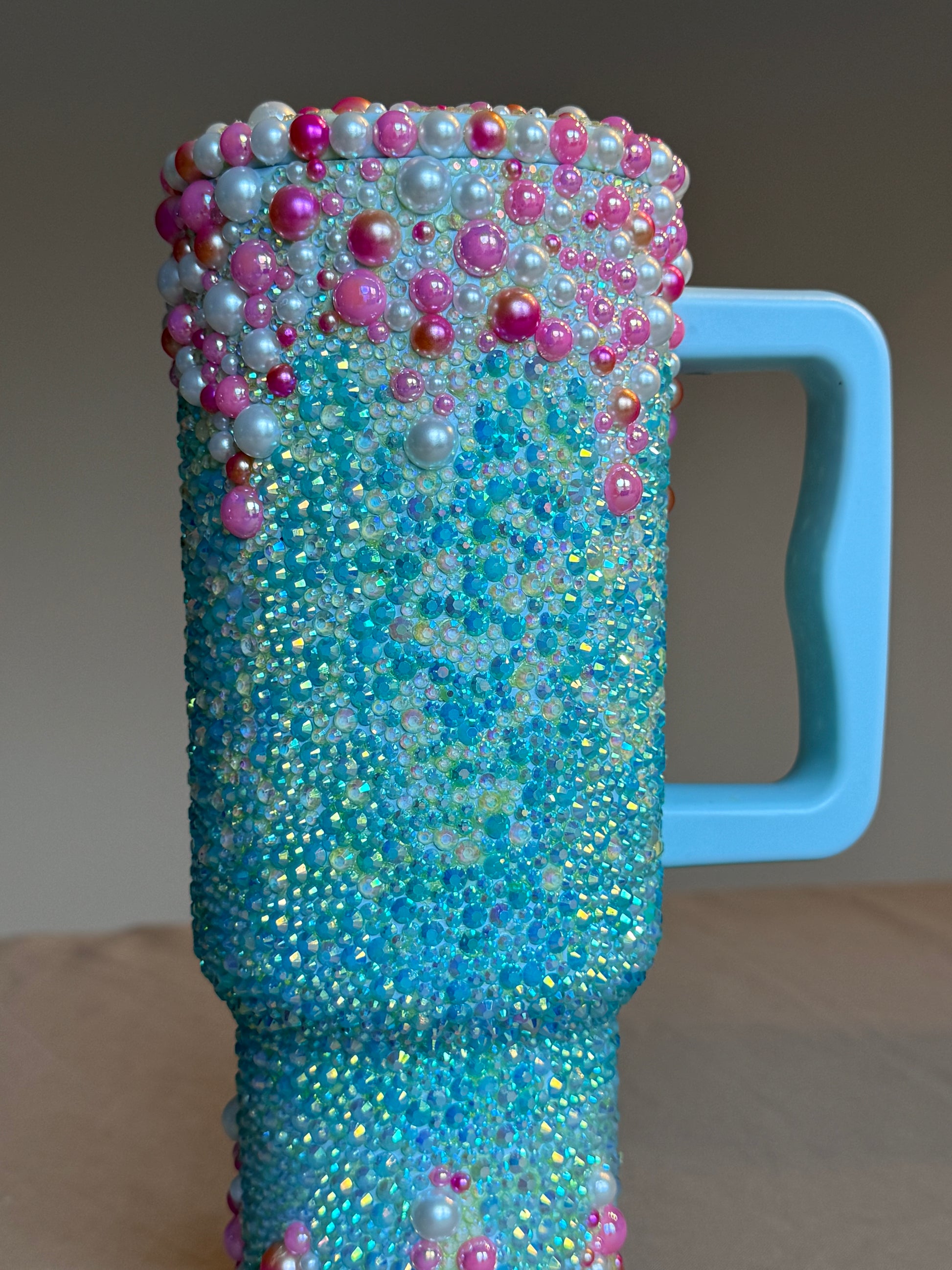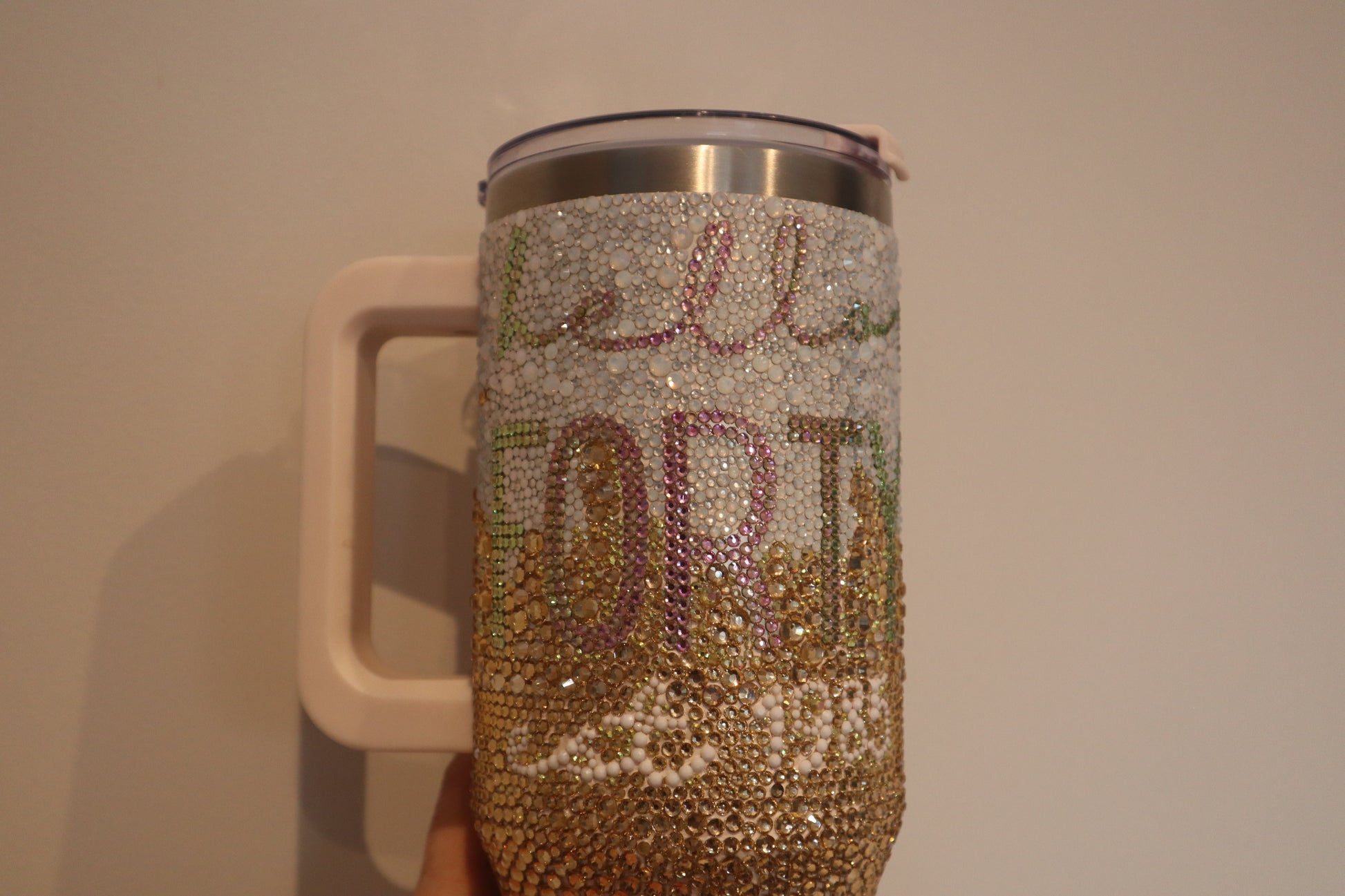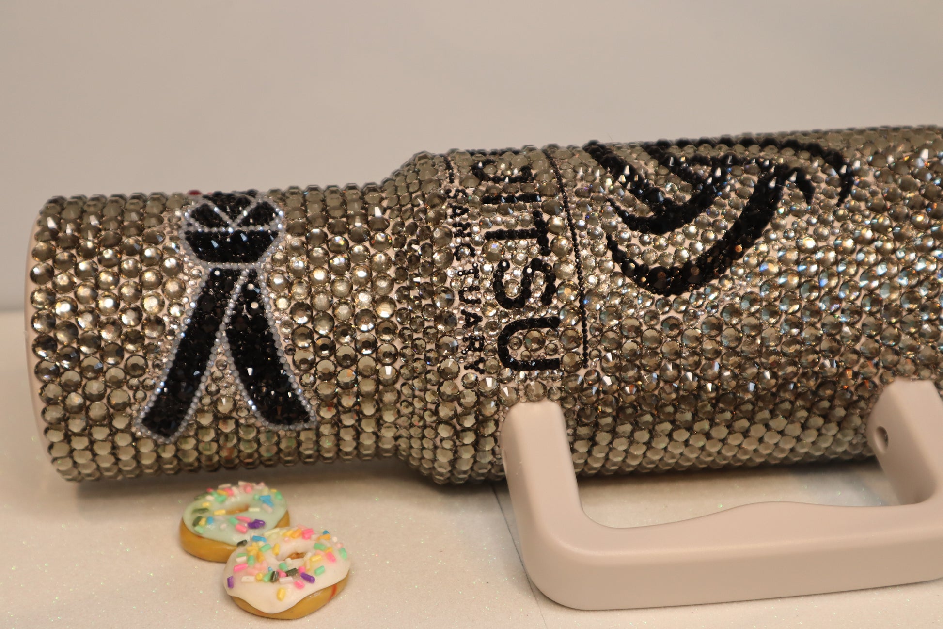 Custom Travel Mug, keeps drinks cold for 8-12hours. Comes with plastic straw and straw cleaner.
