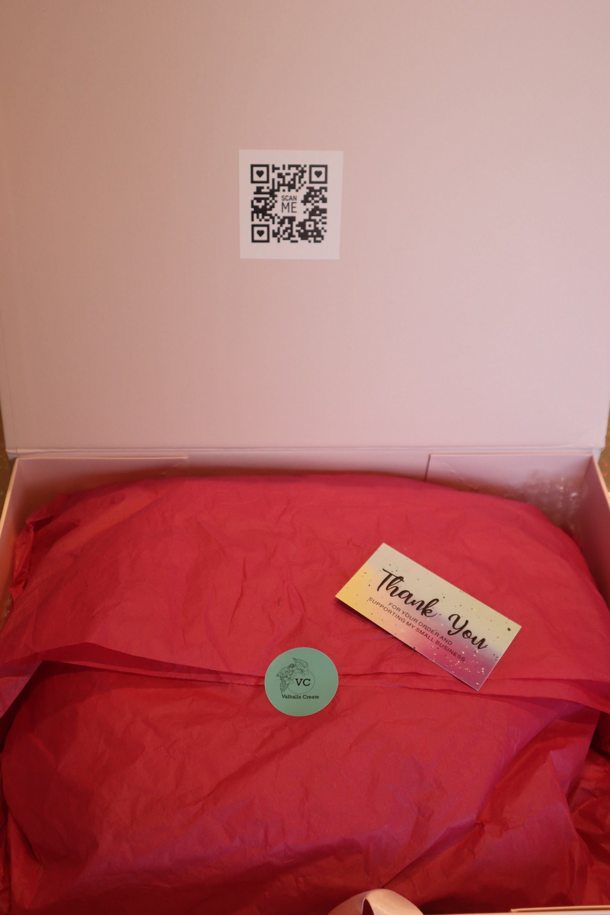 - Bubble wrapped inside of box with tissue paper and sealed with a sticker.
