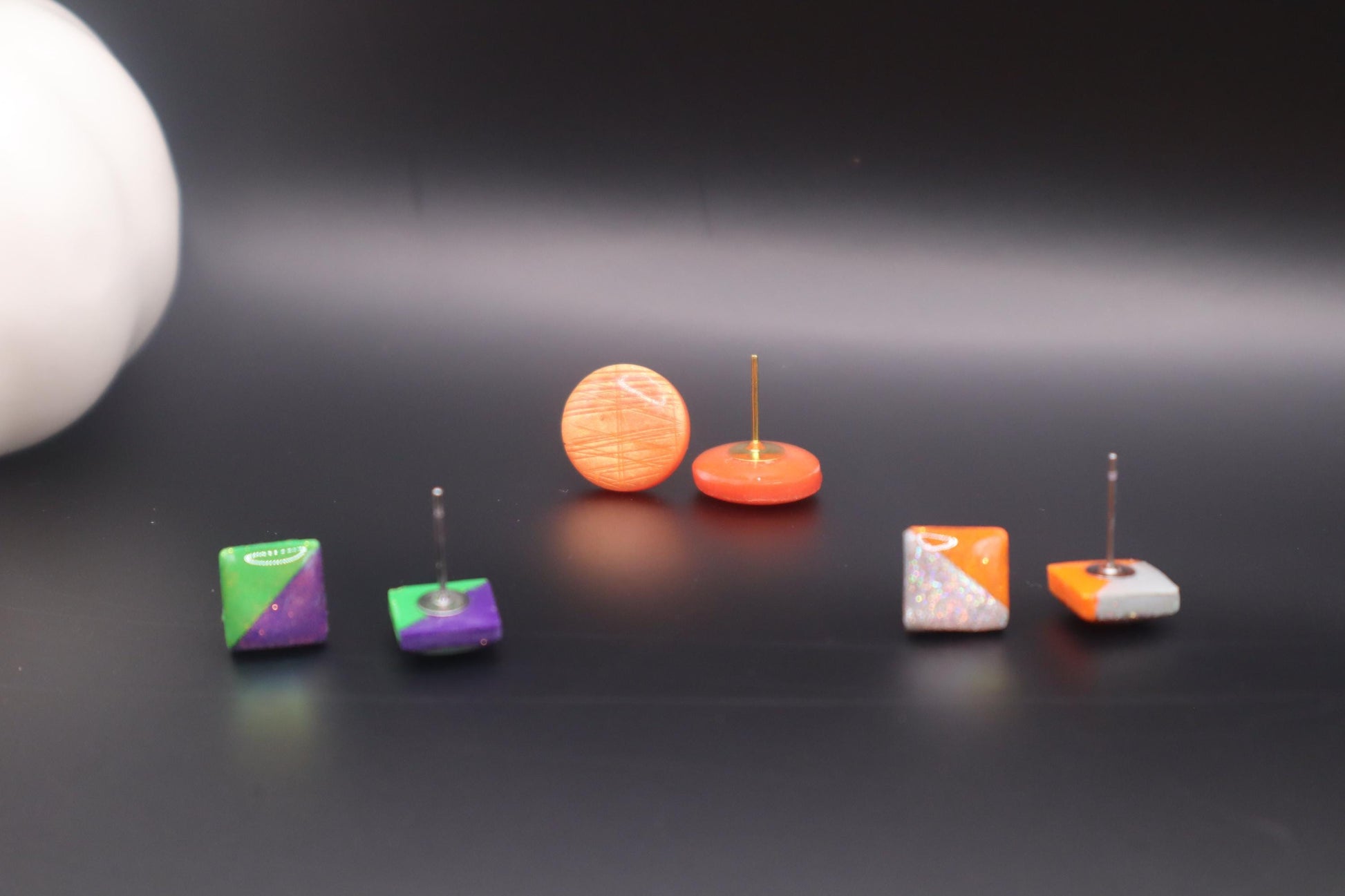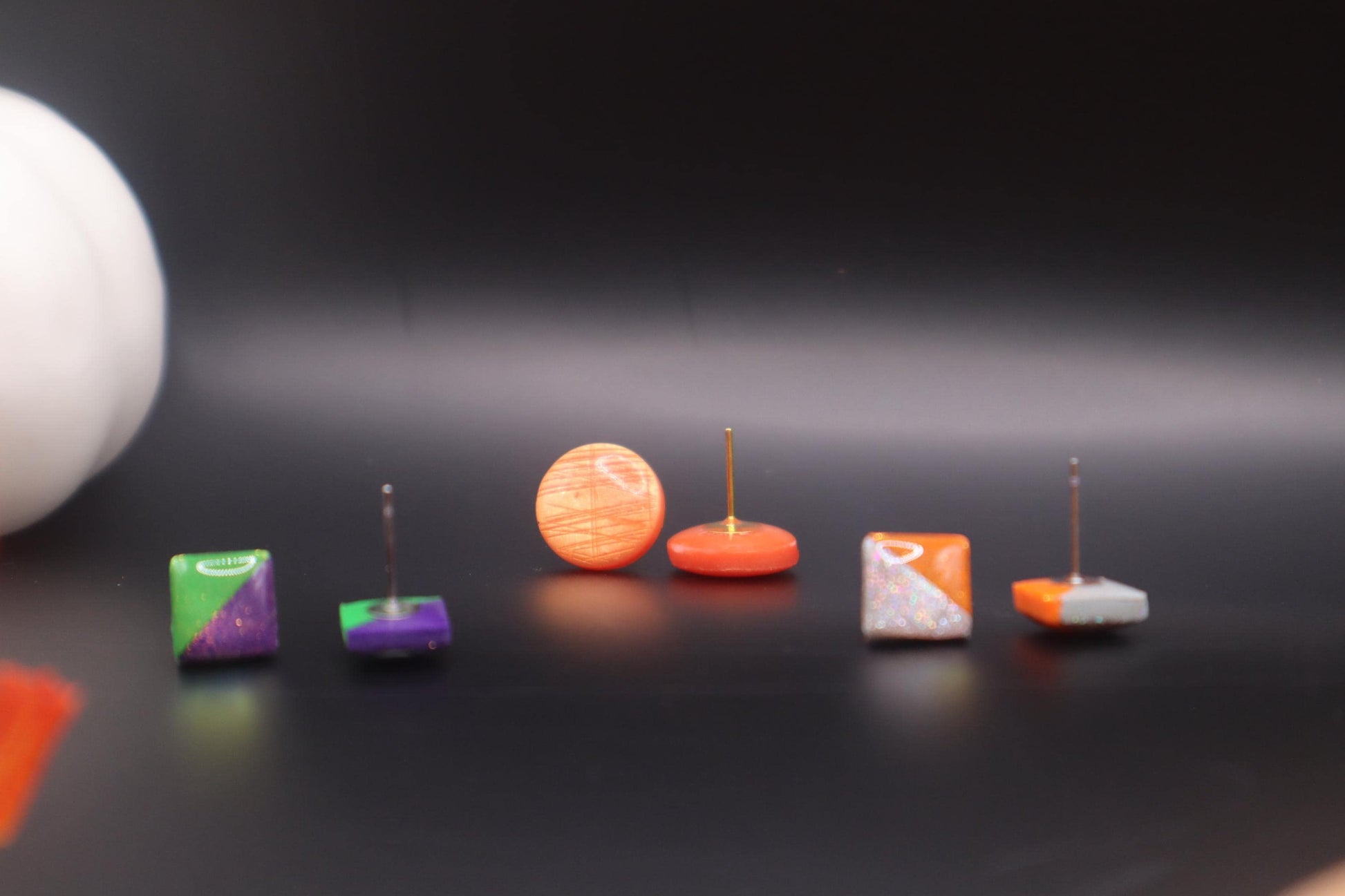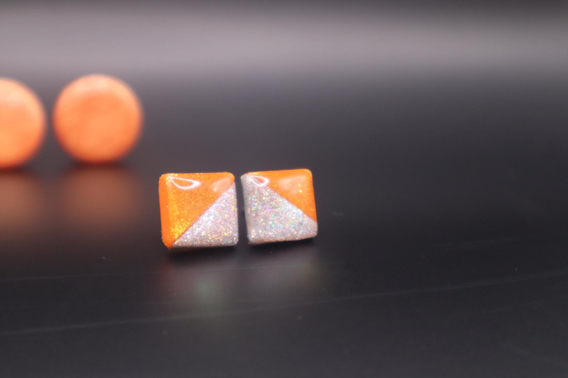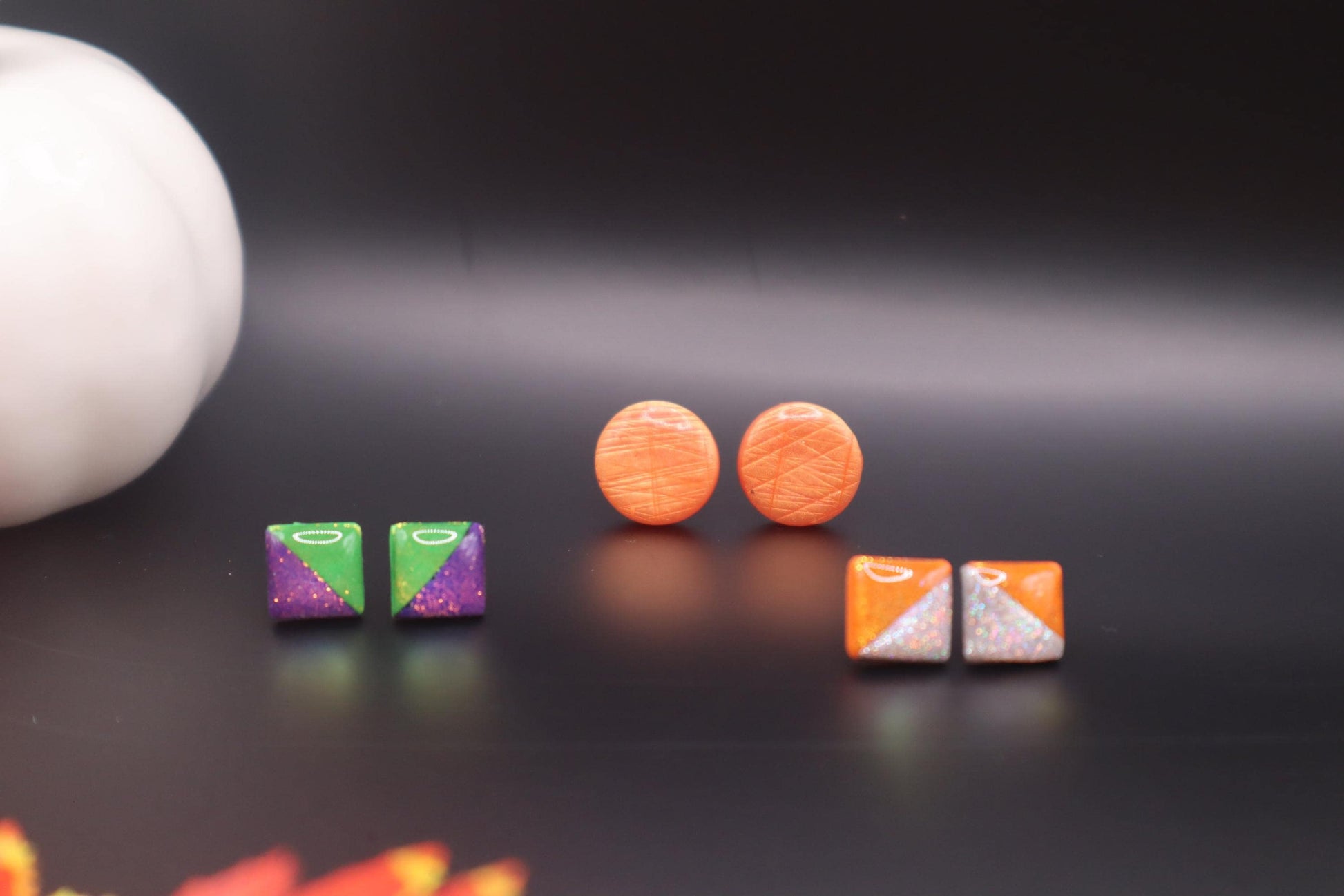 Glitzy Halloween stud, polymer clay, Resin lightweight handmade beautiful stud earrings, Nickel free findings.fall Halloween, handmade