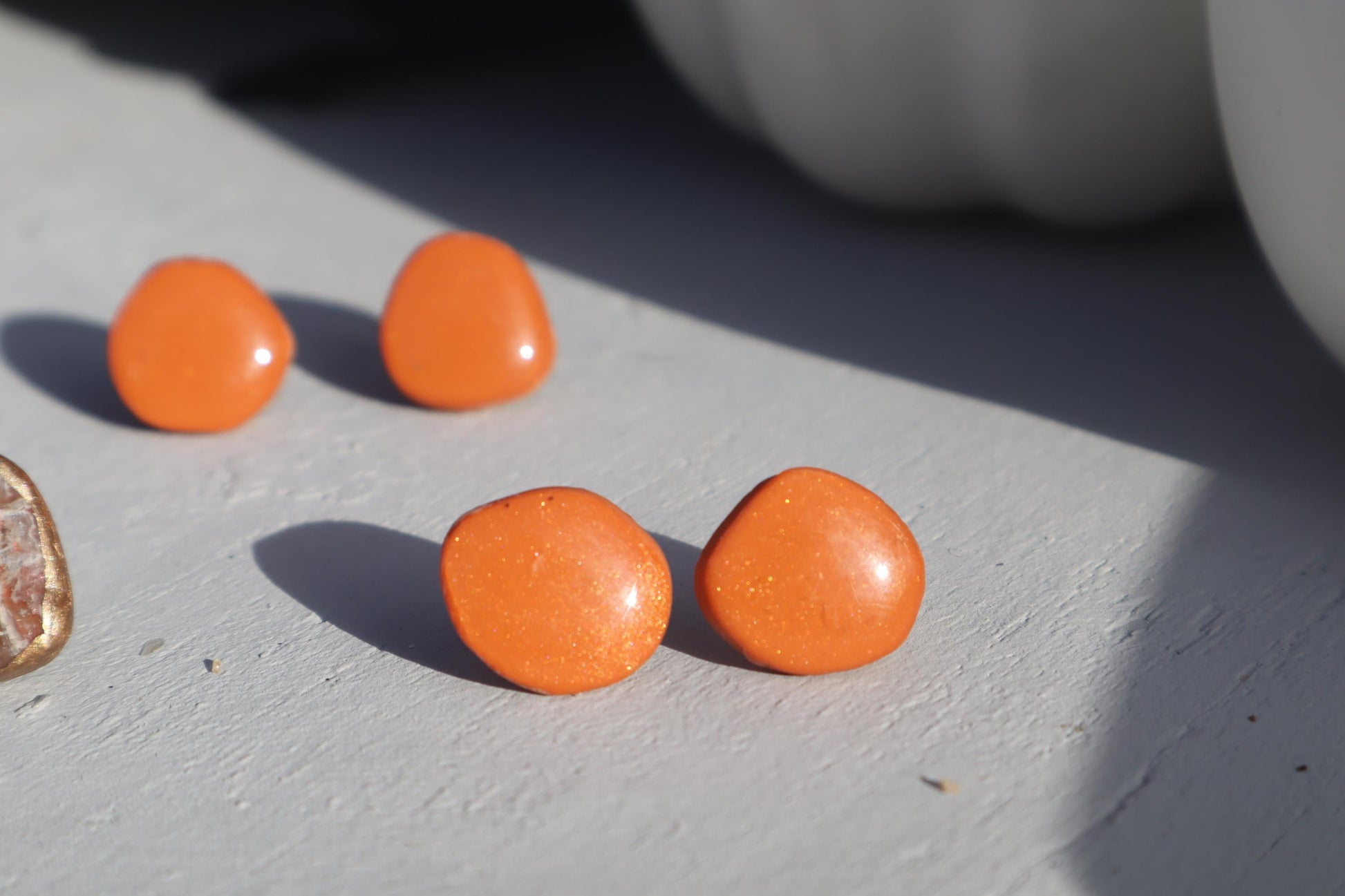 Hand cut Faux stone and shimmering orange studs,polymer clay lightweight with resin, handmade beautiful earrings,Nickel free findings