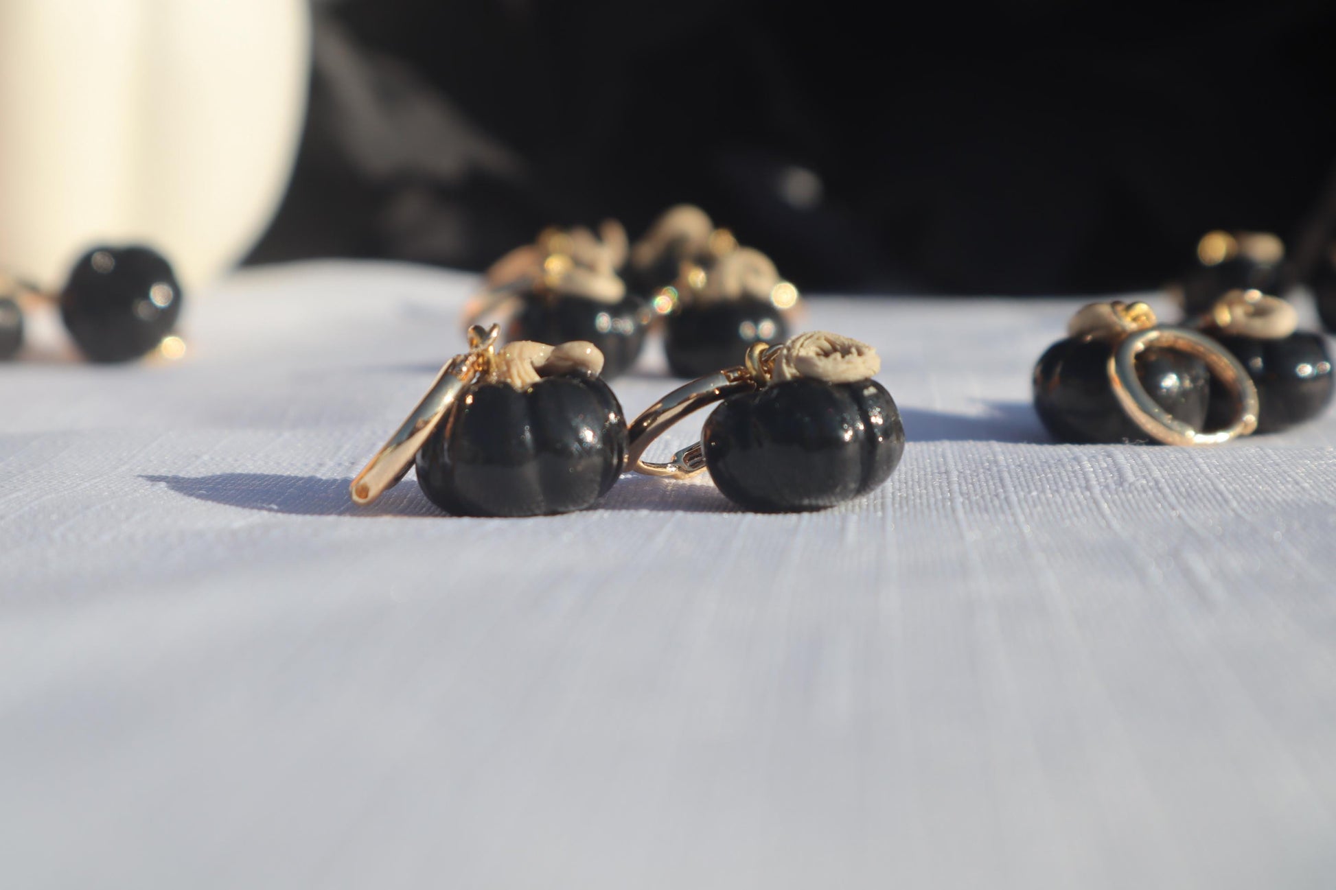 Miniature black pumpkin Huggies, huggys gold plated 18k gold , lightweight handmade beautiful unique earrings. Halloween Autumn Fall